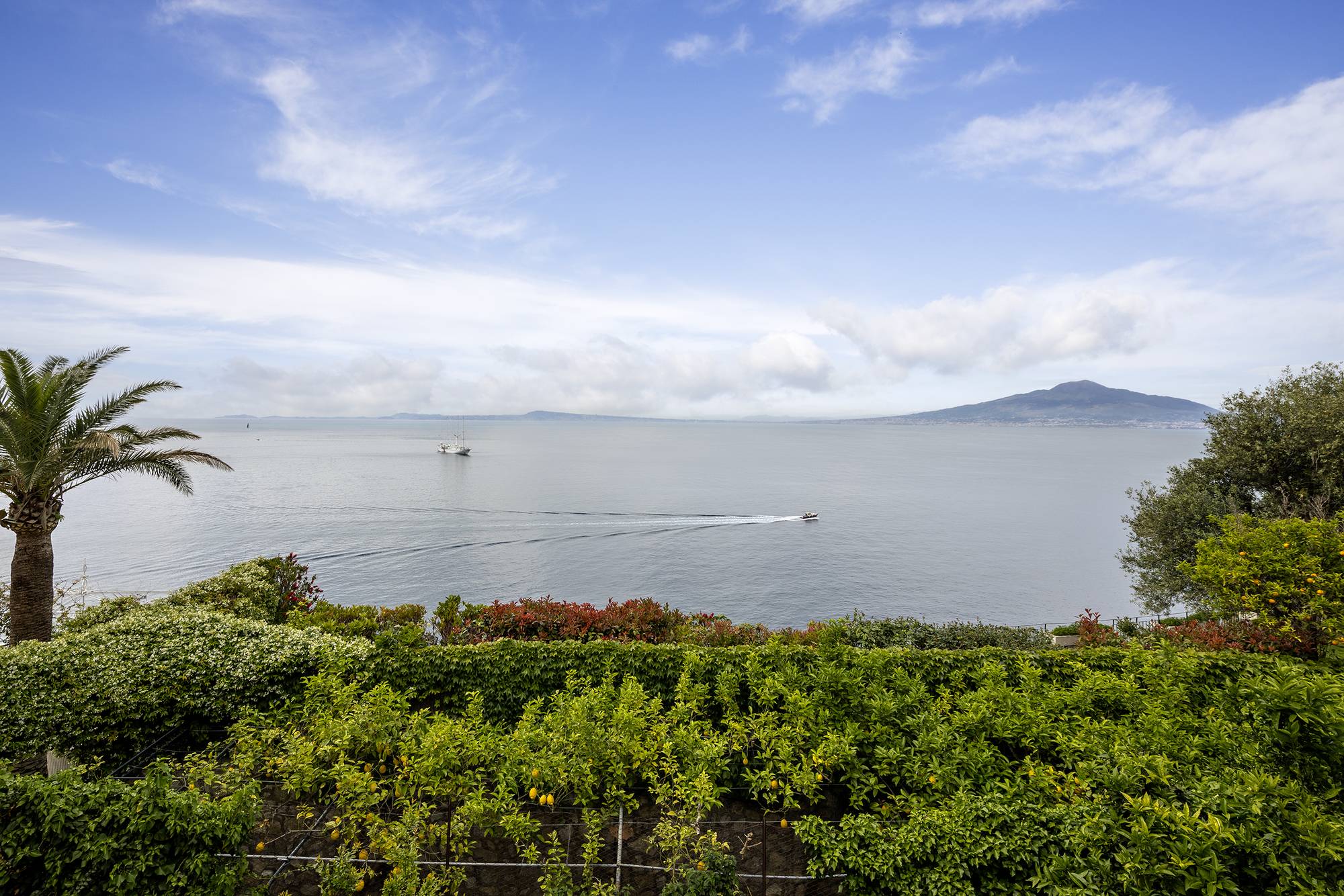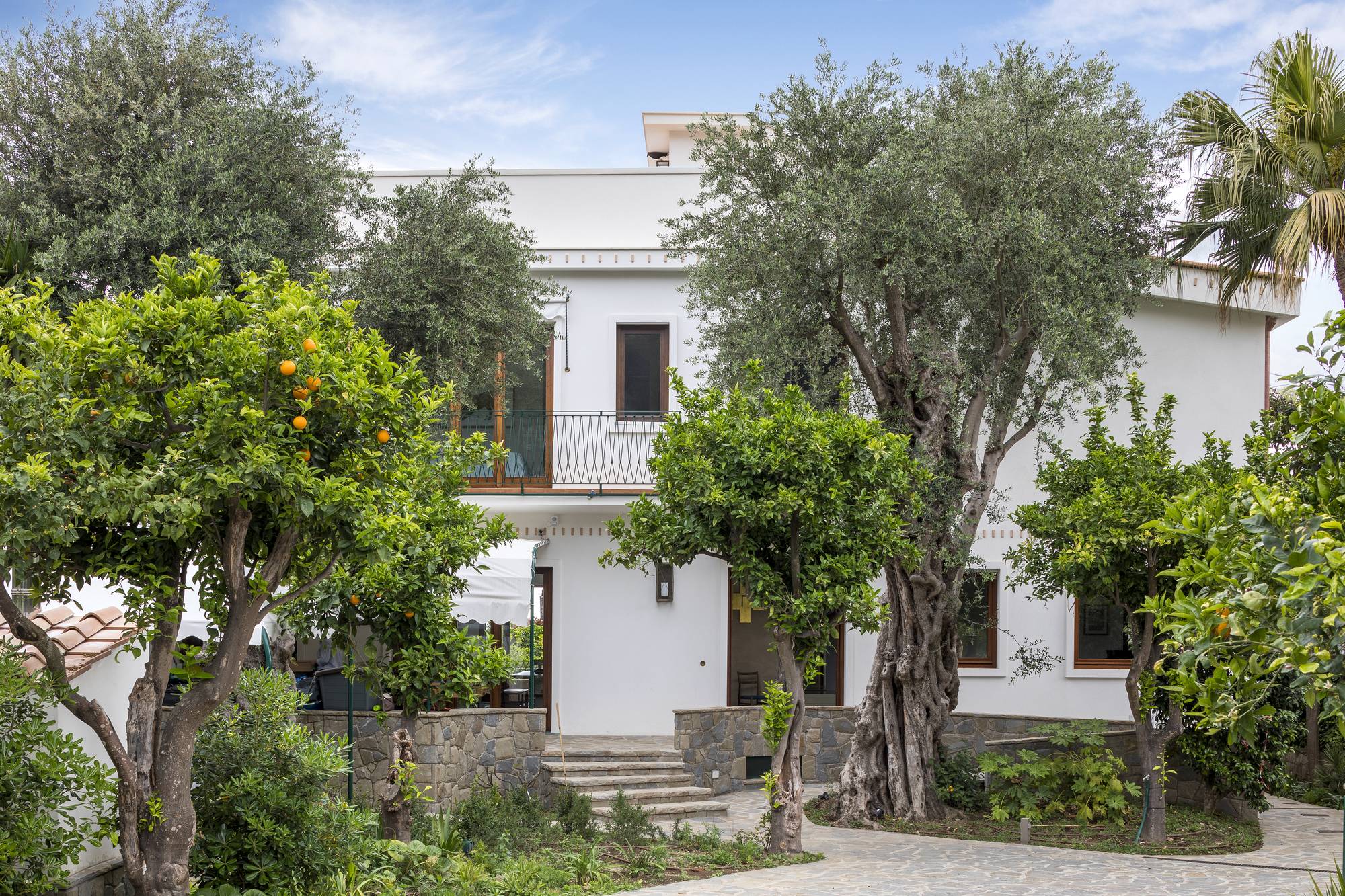 Looking at the sea, the sky and the impressive Vesuvio, the 1950s villa is immersed in the same historical garden of the Hotel Parco dei Principi, the fascinating project by Gio Ponti.